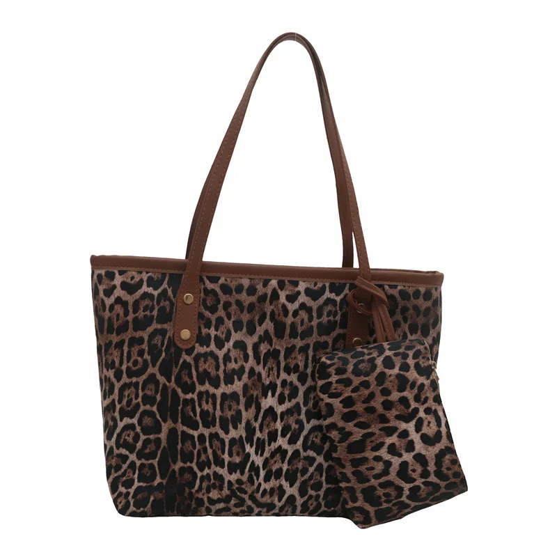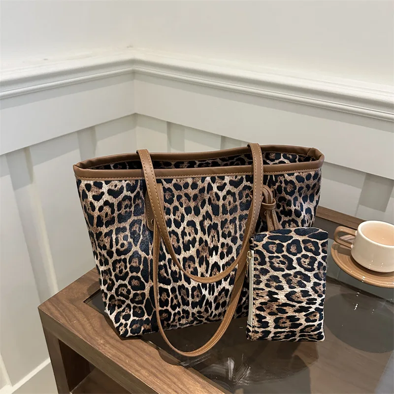 2-piece Set of Fashionable Large Capacity Leopard Print Bag, Women's New Soft Faced Casual Shoulder Tote Bag